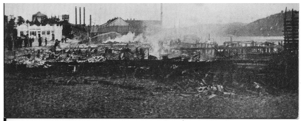 Picture of the fire that destroyed the downtown shopping area of the Florence old town and the building Florence Lodge #107 used for its meetings.